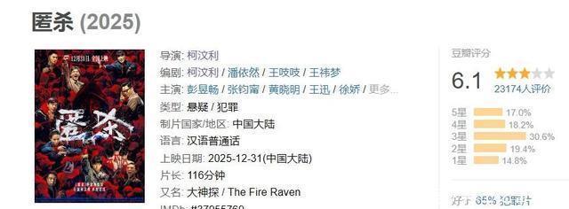 可少数也得盲从多量,不可因为一两个演员还勉强就笃定全员演技王人行 截止发稿时,《匿杀》的评分仍是来到了6.1分