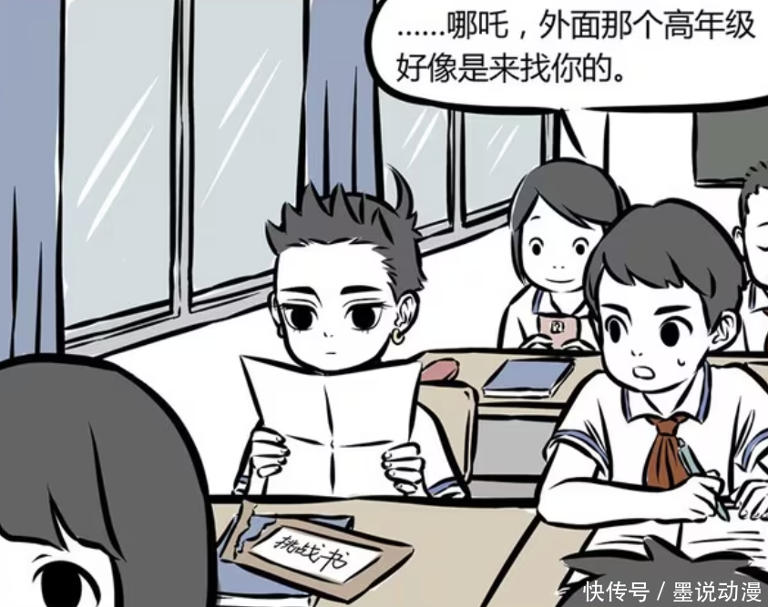 此时红孩儿胆子更大,敢逃课出刻下窗外。挑战书的推行,简短便是让哪吒下学后去天台见,两东说念主要决一雌雄。这两东说念主齐打了那么多场,各式各类的决斗也齐尝试过。红孩儿领悟愈加抓着,哪吒可能早就腻了。