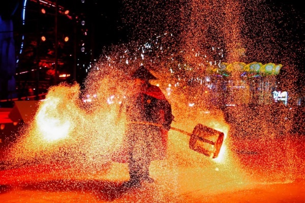 当先的火苗、奔腾的炎火……夜晚,火壶、火棍、火裙舞、火刃等多个由火构成的国潮火花秀将顺序登场,点亮小镇秀美夜空。旅客不仅能玩赏这一场场视觉盛宴,还能在火热的氛围中大叫迎新。同期,文旅湖畔区域还有龙舞、醒狮、打铁花等饰演,为新春增添更多民俗风范。