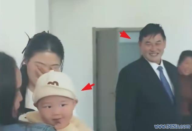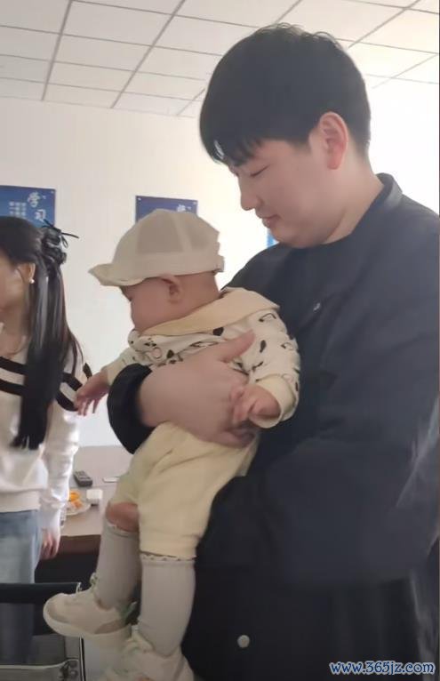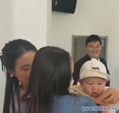 5个月的朱发顺胖嘟嘟的形势,被你爸朱小伟抱着超等显可儿。