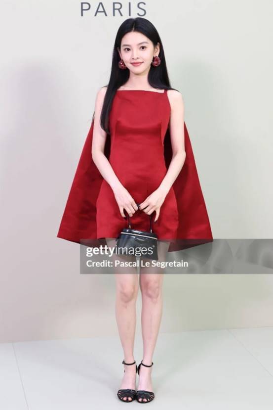 红色短裙搭配背后的披风,档次感烘托下显得她体格比例愈加优厚,检朴的作风也相比符合章若楠极新的气质。