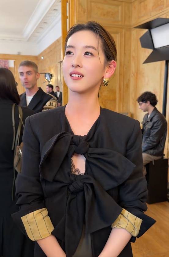 章泽天此次现身Uma Wang秀场,玄色蝴蝶结上衣搭配咖色长裙,造型固然相比低调,但章泽天的脸很难不诱骗提防力。