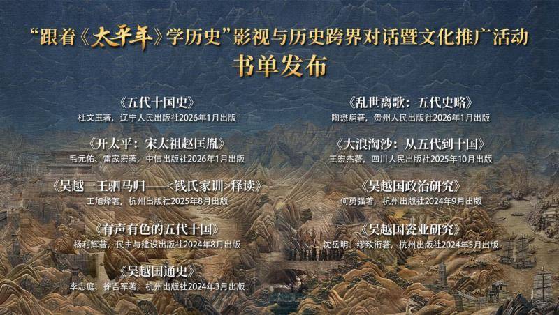 历史是最佳的教科书。为了便捷不雅众“随着《太平年》学历史”,深化对五代十国这段历史的和会,看成现场举行了“读史不雅剧·经典同业”保举书单发布庆典,全心甄选的历史书单,涵盖《五代十国史》《吴越国通史》《开太平:宋太祖赵匡胤》《吴越一王驷马归——释读》《有声有色的五代十国》等九部文章,旨在为不雅众提供系统延迟阅读的疏浚,向全社会倡议:随着《太平年》学历史,不雅好剧、读好书、修好史,共同鼓舞历史文化常识的提高、传承与革命。